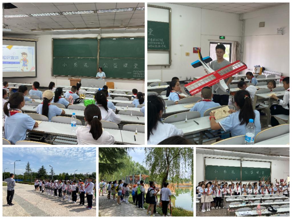 进入校园后,“小葵花”们感受着大学的学习氛围。银河航模协会的志愿者们为“小葵花”们准备了精彩的科普知识讲座,讲述了航模的发展历程、结构构造、个体特点等,同时也为“小葵花”们普及了航空航天知识,讲解了不同航模间微妙的差异。志愿者们还带领每位“小葵花”制作了飞机小模型,激发了大家的航天梦。之后,大家参观了校园,图书馆的宏伟、明德湖的静谧、芳菲路的芬芳、竹林的雅致,陶醉了每一位人员。