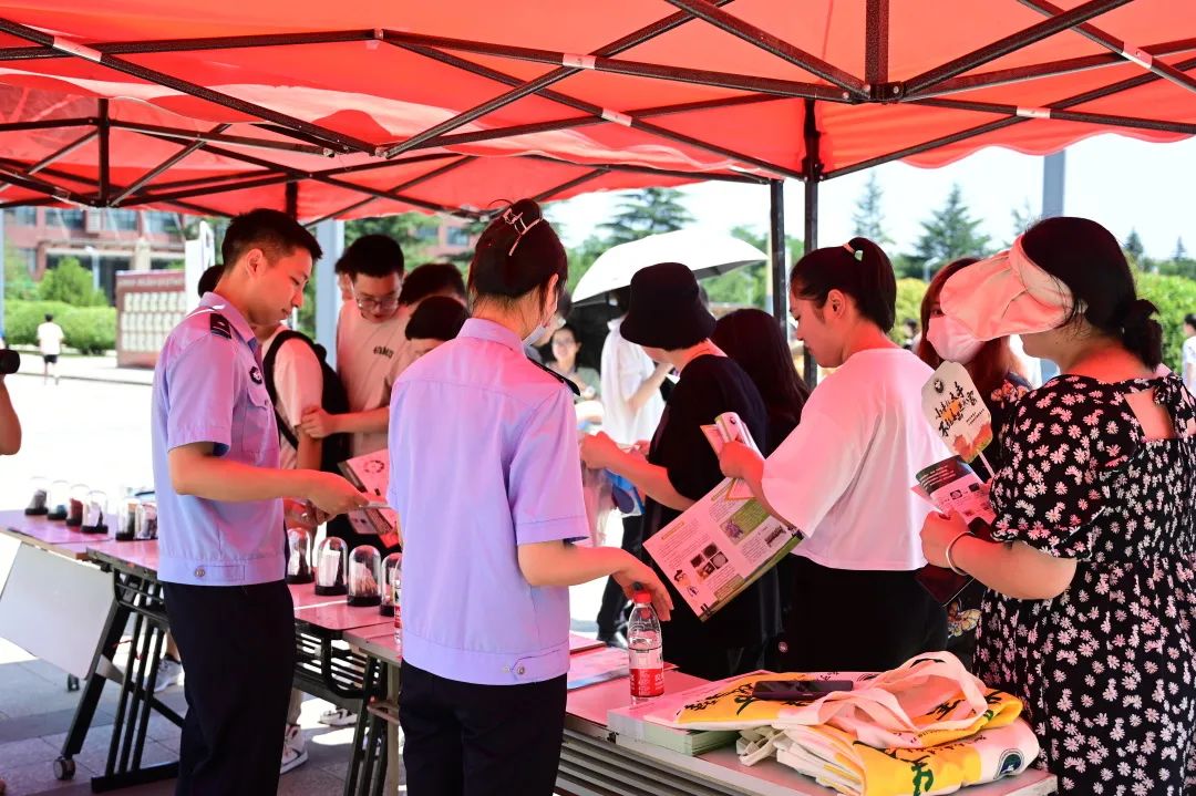 讲座结束后,碑林区禁毒大队在学校中心广场进行外展宣传,通过禁毒宣传展板、禁毒宣传手册、毒品样品模型、播放禁毒宣传视频、现场讲解等形式向学生普及禁毒的相关知识,增强大学生自觉抵制毒品侵袭的能力。