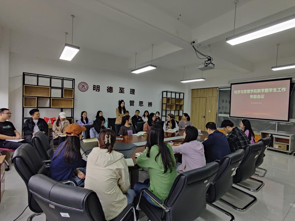 新学期伊始,为确保学院各项学生工作顺利开展,扎实做好疫情防控常态化工作,8月30日上午,经济与管理学院在明志楼北507召开2022年秋季新学期学生工作专题会议,学院全体辅导员参加会议。会议由学院党委书记兼行政副院长何文举主持。