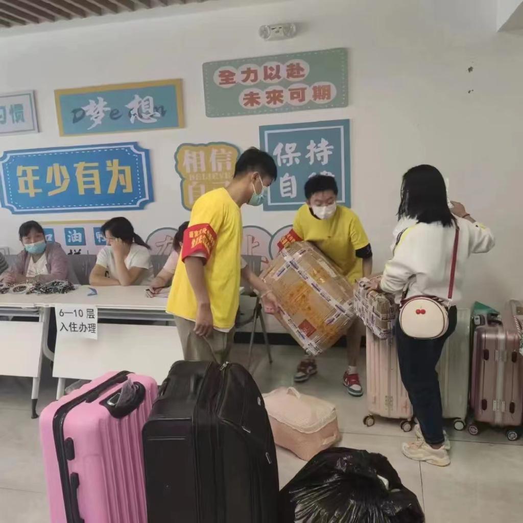 9月的天气依旧是骄阳似火、燋金烁石,但党员先锋队的同学们始终坚守岗位,从报道缴费到放置行李,为新生们提供贴心周到的服务,全力做好新生的领路人。陌生的面孔,温暖的笑容是对他们最准确的描述。萍水相逢,不变的是真诚的微笑。“忘了自己,宽了心胸”是对他们由衷地赞美。他们无私奉献,他们耐心包容。青春似火,青春闪光,青春无悔,青春不朽。党员先锋们用微笑与善意,诠释着“奉献、友爱、互助”的精神,让学院的迎新活动充盈着更多春天般的温暖。