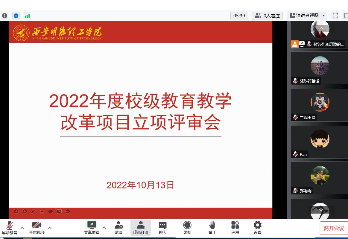 为推进世界杯官网教育教学改革,进一步提高教学水平,学校于10月13日上午组织召开2022年度教育教学改革研究项目立项线上评审会。会议邀请了3位项目评审经验丰富的校内外专家学者组成评审组,围绕本年度教改项目立项展开评审工作。