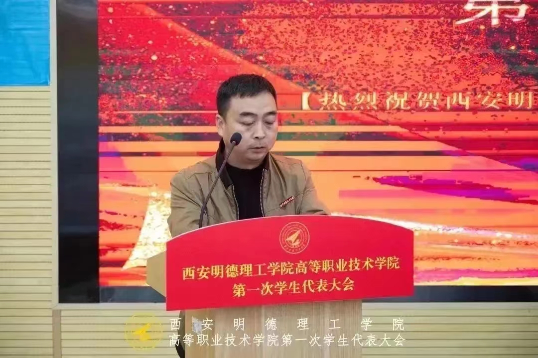 高等职业技术学院党总支书记、副院长王庭良讲话,王庭良表示,本次学代会的召开,是我院学生政治生活中一件大事;是促使我院学生会工作步入规范化、常态化的一次重要会议;是我院学生会工作承前启后、继往开来的又一个起点。对过去一年我院学生会的工作给予了充分肯定,并对团学工作者表达了衷心感谢,同时对学生会今后的工作和发展提出几点希望和要求:一是作为学生干部思想要过硬、素质要过硬,二是要平衡好学习与工作,三是不断加强自律意识和责任意识。