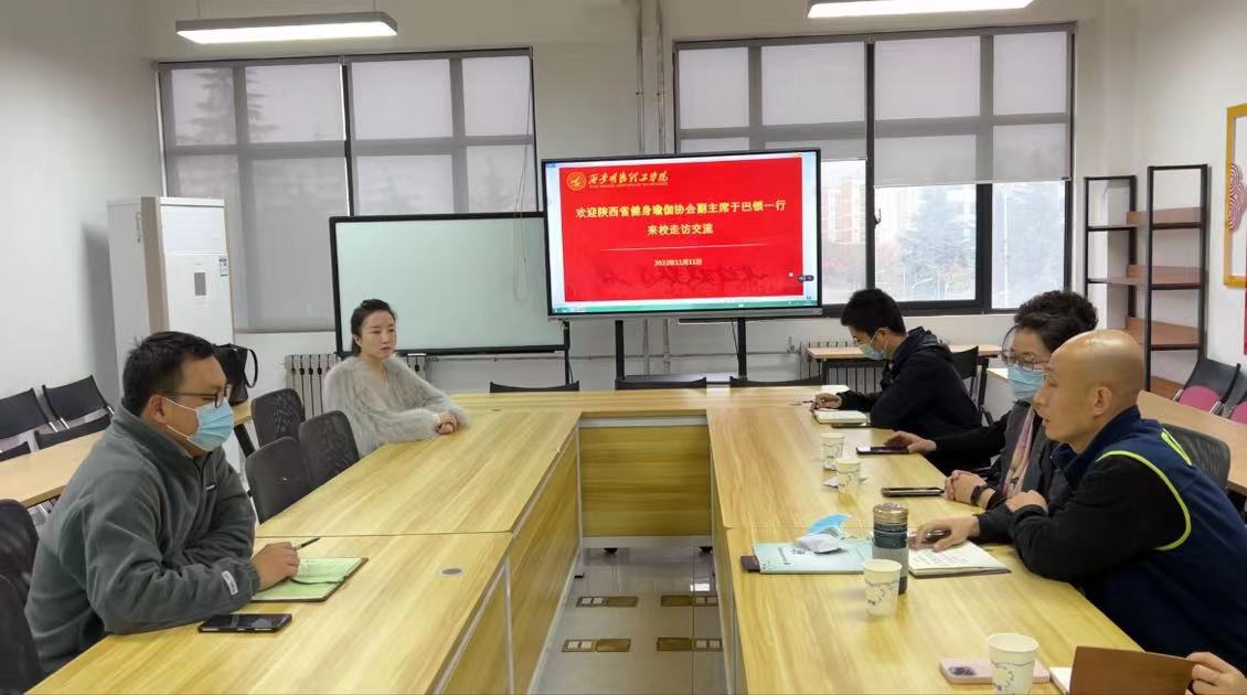 11月11日上午,陕西省健身瑜伽协会副主席于巴锁、常务理事赵琬钰、裁委会主任游春花、艺术顾问关磊、孙焕梅及秘书处黄振来校考察交流,学院党委书记王君涛、办公室主任王晓强、瑜伽课程教师祝新蕊进行了热情接待。