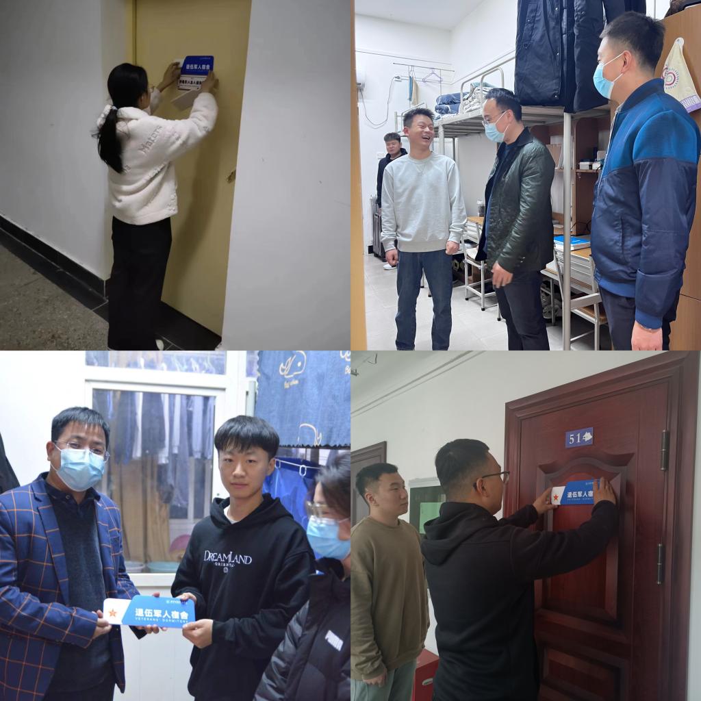 为进一步营造尊崇军人、关心军人、服务军人的良好氛围,树立校园精神文明建设新风尚,鼓励退伍学生亮明身份、发挥作用、作好表率,充分发挥退伍军人朋辈育人和模范带头作用,积极带动身边同学养成严谨自律的生活习惯,从11月4日下午开始,世界杯官网人武部陆续组织对各院退伍军人宿舍进行挂牌,学校人武部部长童杨梓,各学院党委书记、副书记、副院长、征兵工作专干、辅导员老师等参加了挂牌活动。