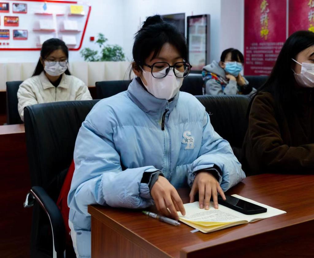 曹佳惠说,作为新时代的青年学子,理应勇做走在时代前面的奋进者、开拓者、奉献者,努力使自己成为祖国建设的有用之才。作为学生党员,要坚持学习贯彻习近平新时代中国特色社会主义思想,从机遇看挑战,从取得的成就看成因,从思想看实践,坚守初心使命,常怀远虑、居安思危,努力学习,提高本领,让青春在奋斗中绽放最绚丽之花。以时不待我、只争朝夕的精神,为中华民族伟大复兴贡献青春力量。