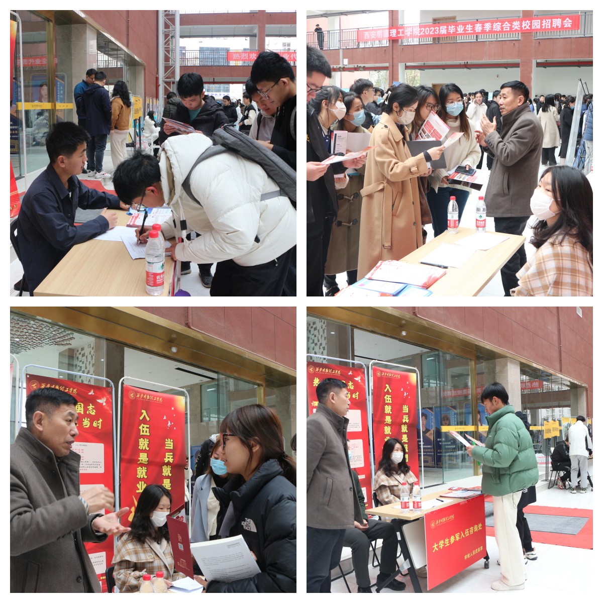 为进一步推进世界杯官网2023年大学生征兵入伍工作,积极引导和鼓励更多的毕业生响应国家号召,投身军营,建功立业,3月1日,上半年大学生入伍工作刚接近尾声,学校人民武装部就以“学校2023届毕业生综合类春季校园招聘会”为契机,在现场设立了“大学生参军入伍咨询处”,率先开启了2023年下半年的大学生入伍宣传工作。