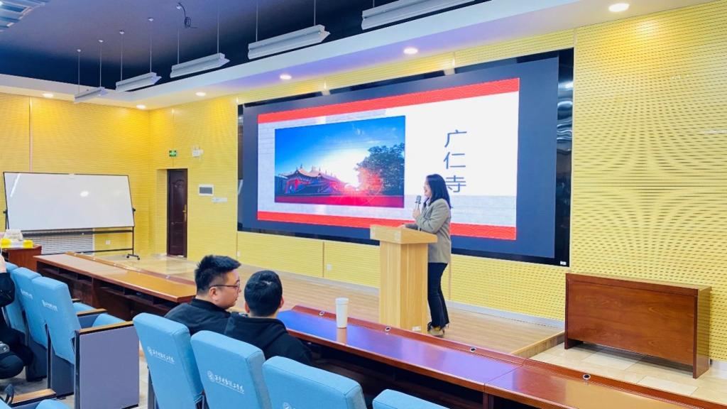 西安广仁寺景区讲解接待部负责人宋虹通过视频宣传片向大家全方位展示了西安广仁寺景区,随后她从景区文化,目前情况,福利待遇,招聘条件等方面向同学们做了详细讲解,真诚期待同学们的加入。