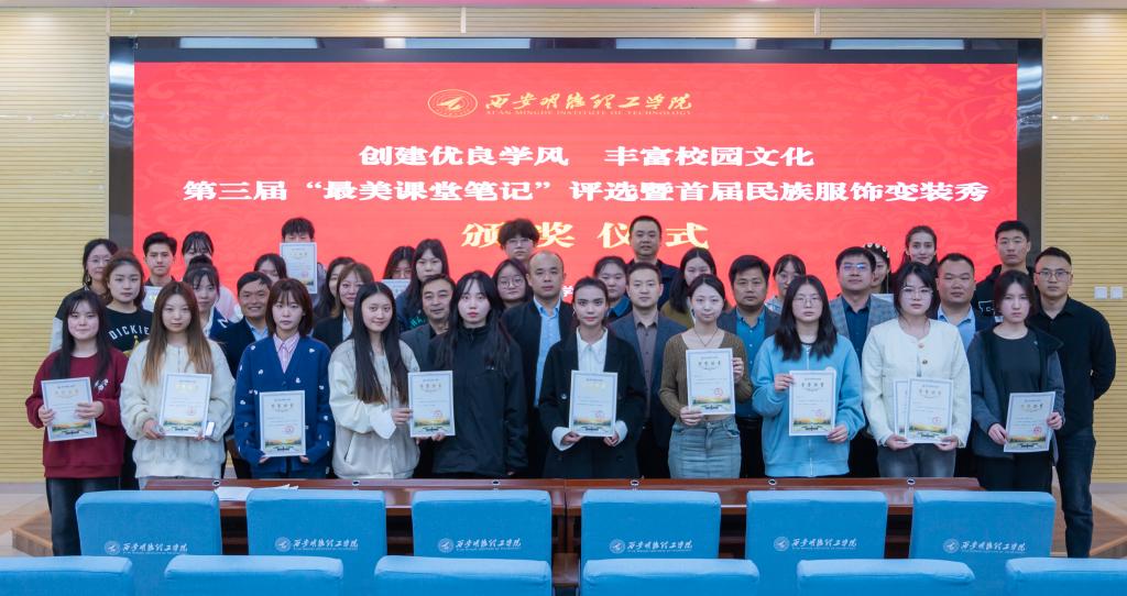 侧耳倾听教诲,埋头奋笔疾书,感悟学习之美,展示民族传统。为创建优良学风、丰富校园文化,3月7日中午,第三届“最美课堂笔记”评选暨民族服饰变装秀颁奖仪式在建德楼202报告厅举行。党委学生工作部相关老师、各学院学生工作负责人、学生代表等90余人参会,王飞老师主持颁奖仪式。