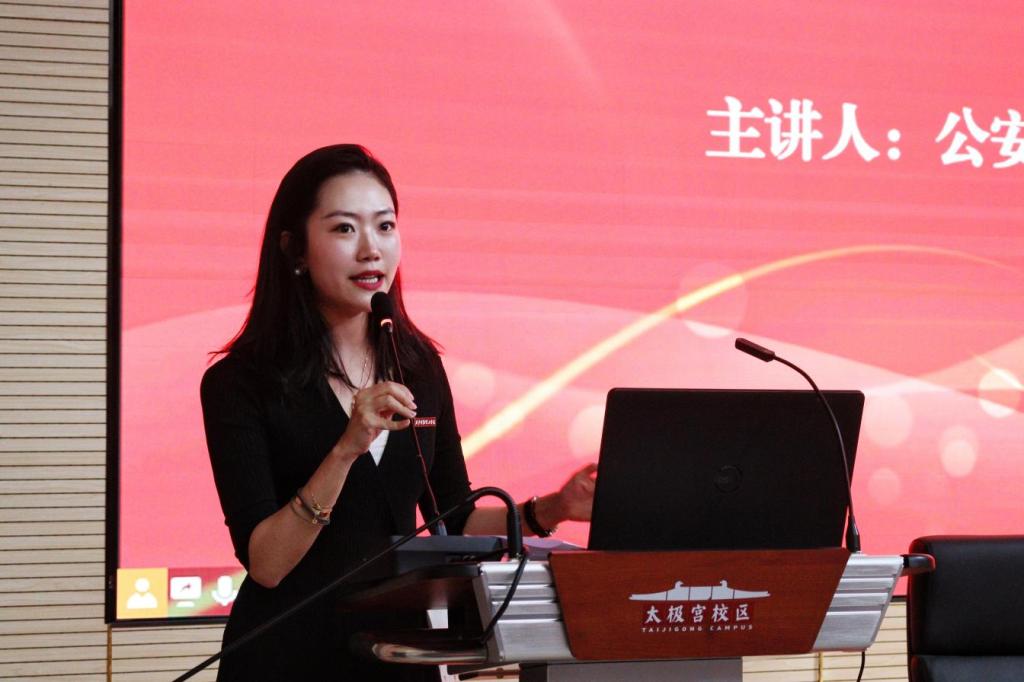 为进一步提高学院师生的防诈意识,增强对电信网络诈骗的辨别能力,有效预防和遏制高校电信网络诈骗案件的发生,打造和谐平安的校园环境。近日,艺术与设计学院邀请西安市公安局莲湖分局青年路派出所反诈宣讲团志愿者服务队走进北校区,开展“法治教育进校园 警校共筑安全网”预防电信网络诈骗知识专题讲座。青年路派出所户政所长孙静、学院党委书记兼行政副院长雷宇、辅导员张睿华、兰艳以及民警代表、学生代表参加讲座。讲座由青年路派出所户政所长孙静警官主讲。