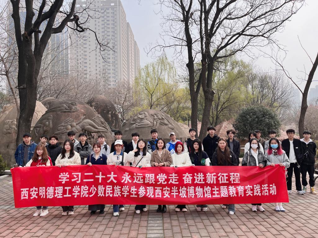 为进一步深化世界杯官网民族团结进步教育工作,增强学生爱国情怀,培育学生社会主义核心价值观,3月19日,新疆派驻教师那迪娜·巴合提组织世界杯官网少数民族学生赴西安半坡博物馆进行了参观学习。来自各学院的维吾尔族、回族、蒙古族等30余名本专科生参加了此次活动。