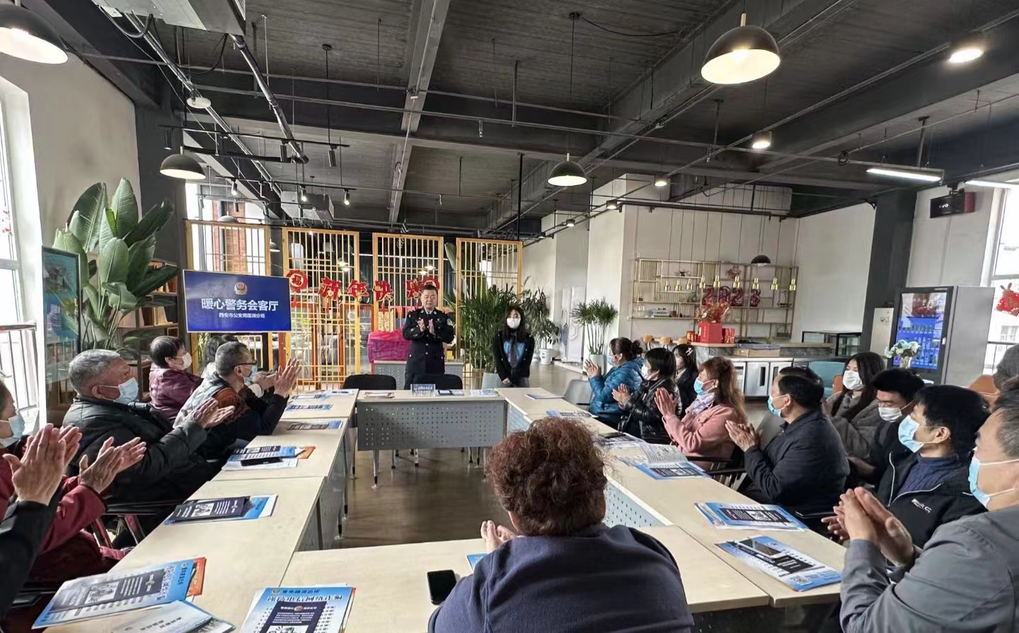 志愿者们联合青年路派出所孙静警官通过要点阐释、情景演绎,向辖区老人代表宣讲养老反诈知识、网络电信常见诈骗套路等,以案说险,生动形象地帮助老人了解真实“养老政策”、正确的防范策略,并希望到会老人能作为渗透基层的主要力量,将防诈骗意识植入更多群众心中。