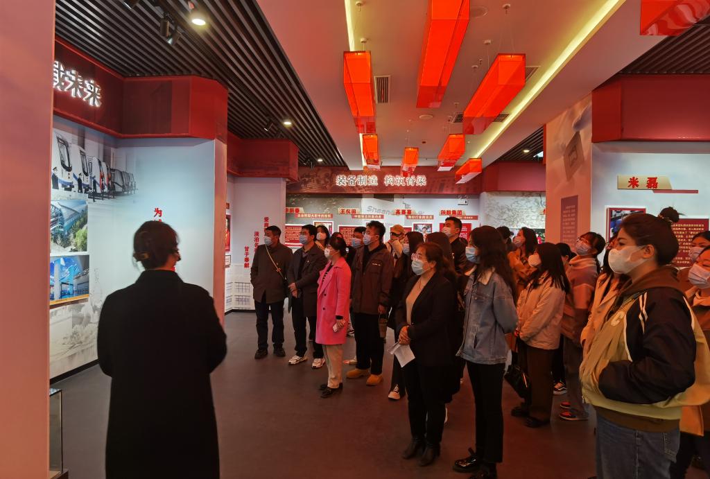 西安市劳模精神展示馆是西北地区首座劳模精神展示馆,也是西安特色爱国主义教育基地和职工思想教育阵地。进入劳模精神展示馆后,首先看到的是大厅展板“劳动模范是民族的精英、人民的楷模,是共和国的功臣”,这是总书记在全国劳动模范和先进工作者表彰大会上的讲话内容。随后,大家跟着讲解员进行“群星耀九州”“回首来时路”“走进新时代”三个部分的参观学习。在整个过程中,大家通过图文、现代声光电、视频教育等相结合的形式学习了各个历史时期劳模和先进集体的事迹和影像资料,涵盖了工人、农民、科技工作者、企业家、艺术家等多方面的代表人物。