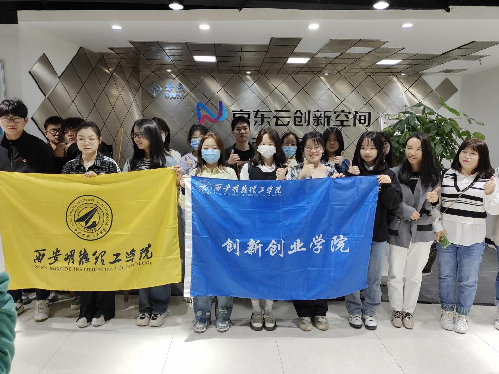 2023年5月11日,创新创业学院思创协会部分成员与经济与管理学院学生第一党支部学生代表在屈菲菲老师和罗夫惠老师带领下前往京东城市创新中心(西安莲湖)参观交流。