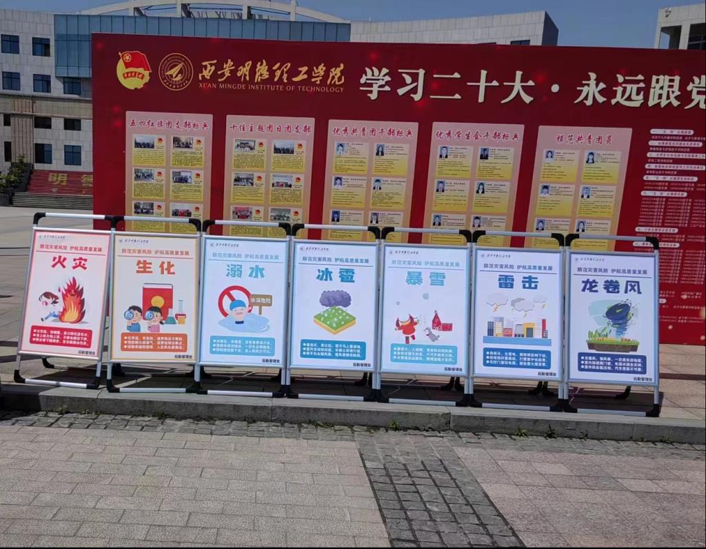 活动期间在校园中心广场摆放了相关宣传海报,悬挂标语横幅,内容涵盖了地震、火灾、水灾、台风等多种灾害类型。海报以图文并茂的形式展现了不同灾害的特点、发生规律以及应对方法,为师生们提供了有益的参考。