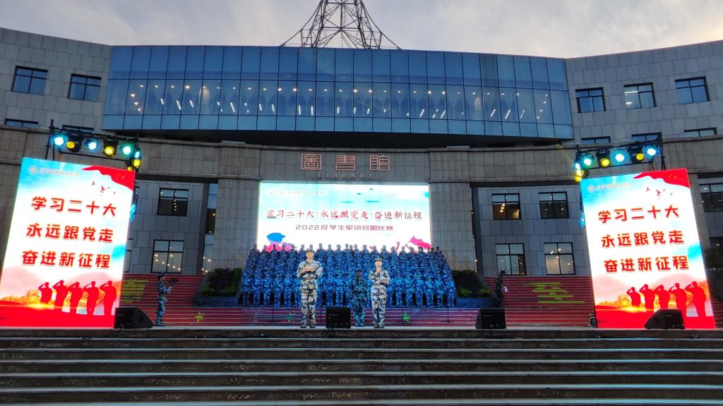 歌声嘹亮立壮志,青春激昂洒豪情。为深入践行爱国主义教育,增强学生的集体主义精神和团队合作意识,丰富2022级学生军训生活。5月15日晚,军训团在中心广场举行“学习二十大 永远跟党走 奋进新征程”军训合唱比赛。军训团全体军政干部观摩了合唱比赛,各营营长、教导员担任比赛评委。