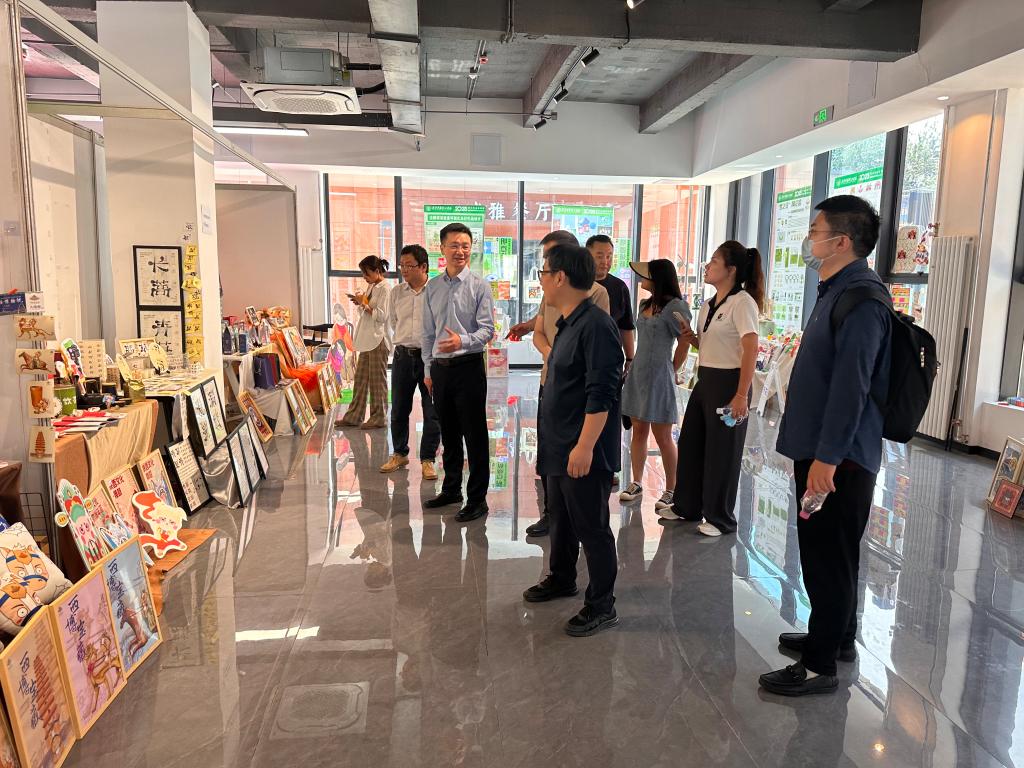 在交流中,胡强书记对我院的教育模式和学生的创造力给予了高度赞扬,并表示街道办将积极推进文创事业发展,鼓励更多的年轻学子在文化创意领域探索和实践。同时,他还提出了一些宝贵的建议和意见,希望同学们在毕业之后能够保持良好的状态,发挥专业特长,不断提升设计能力,设计的作品走进生活,走向社会。对于学生们未来的发展起到了关键的指导意义。
