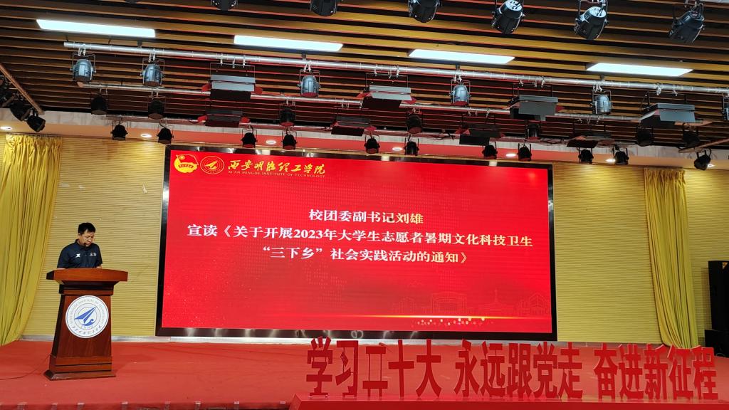 校团委副书记刘雄宣读了《关于开展2023年大学生志愿者暑期文化科技卫生“三下乡”社会实践活动的通知》。