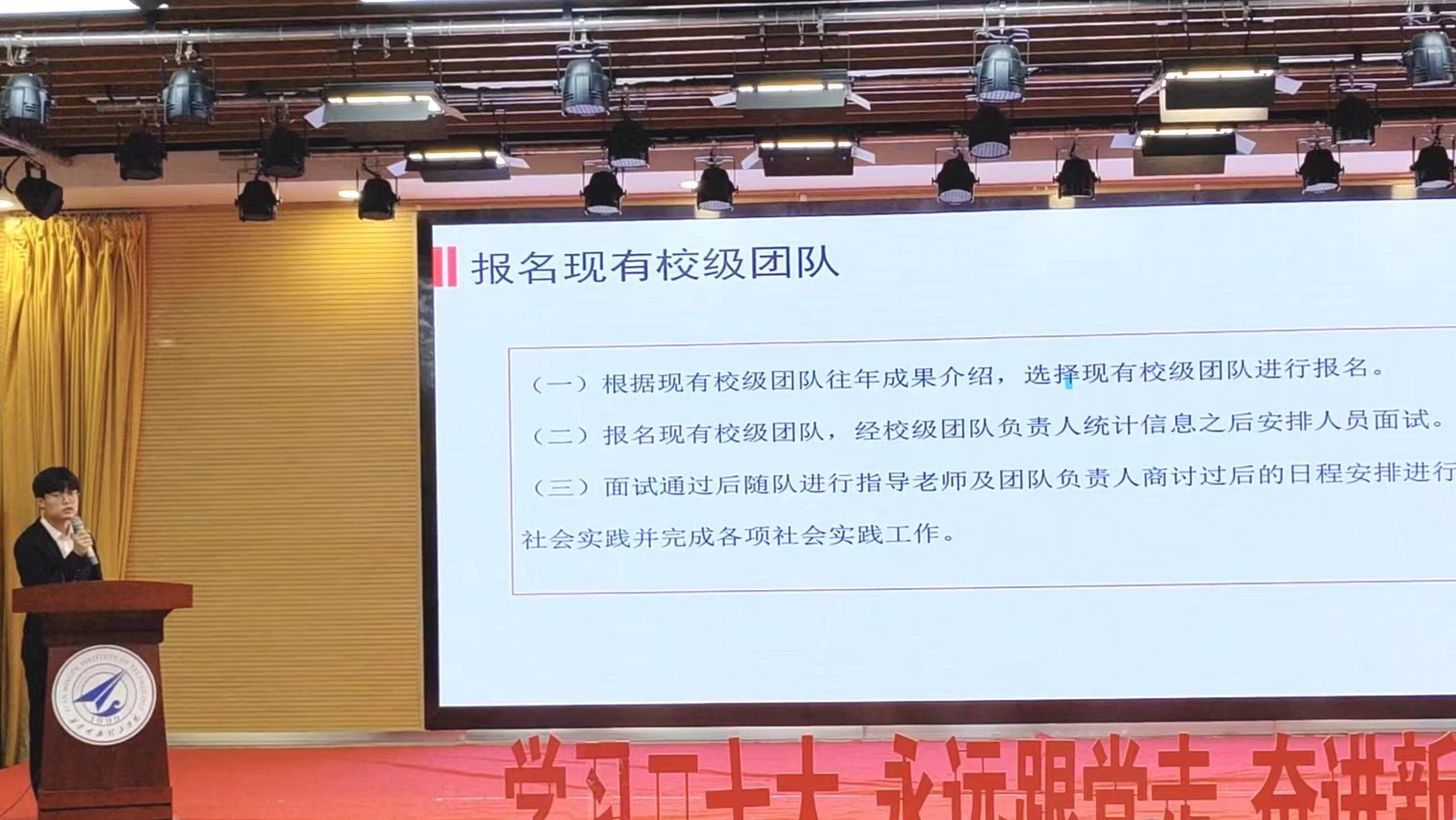 青年志愿者服务团负责人刘佳豪解读2023年暑期文化科技卫生“三下乡”社会实践活动相关政策,并对现有29支校级团队进行了详细介绍,每支队伍都有自己独特的领域,在实践中同学们德智体美劳五个方面都得到了全面发展,紧接着刘佳豪同学分别从“三下乡”队伍前期准备、申报审核、成员确立等部分向大家进行了详细叙述,并在最后为大家说明了报名流程及疑问咨询方式等多方面相关事情。