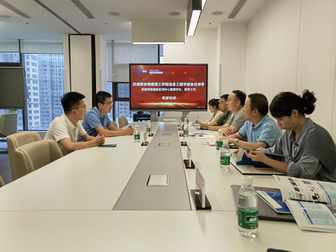 为了促进应用型人才培养,拓建学生就业平台,提升实验实训课程的教学效果,提高学生的实践动手能力。7月3日下午,信息工程学院党委书记肖千春、副院长范晖带队前往西安粤嵌信息科技有限公司调研交流并实地看望实习学生。粤嵌公司总经理王乐忠、校企合作总监高博龙热情接待了学院一行。学院党委副书记高长江、软件工程专业负责人马蕾、电子商务专业负责人张淑丽、督导组组长郭向东随同走访。