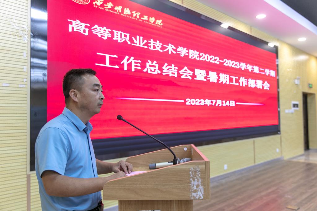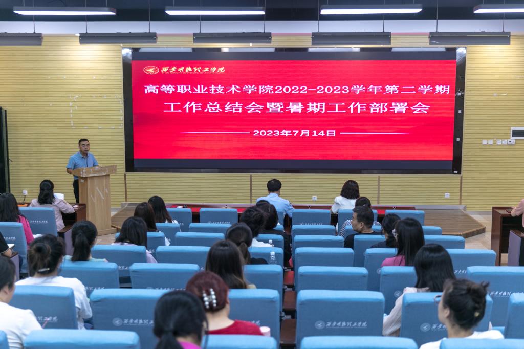 2023年7月14日,高等职业技术学院在建德楼202报告厅召开了2022-2023学年第二学期工作总结暨暑假工作部署会,大会由高等职业技术学院党总支书记、副院长王庭良主持,高等职业技术学院全体教职工参加了本次大会。