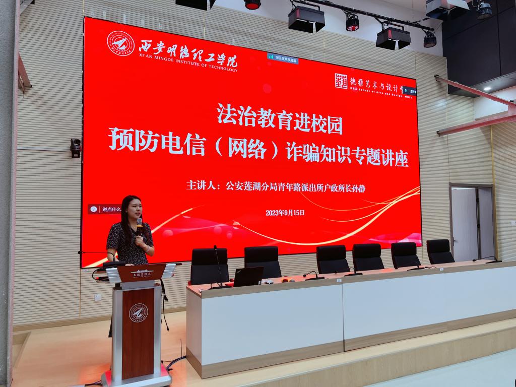 为进一步加强校园安全建设,提高同学们识别、防范网络电信诈骗意识,维护人身财产安全,提升自我保护能力。9月15日上午艺术与设计学院邀请西安市公安局莲湖分局青年路派出所户政所长孙静为我院全体大一新生及大二、大三年级在校学生以线上线下相结合的形式开展法制教育进校园预防电信(网络)诈骗知识专题讲座,本次会议由辅导员刘一涵主持。