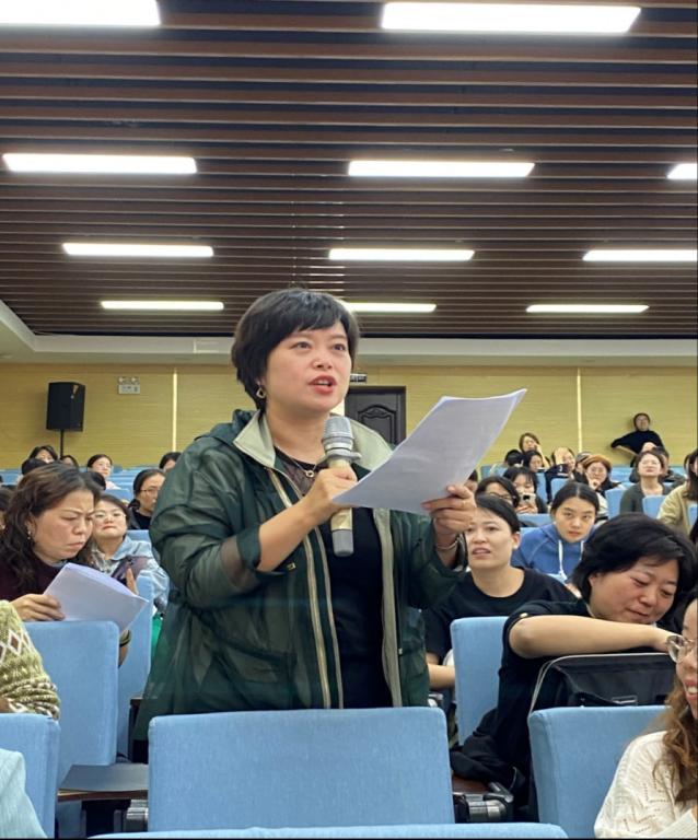 会议尾声,学校教师代表对教学大纲制订中的不解之处,以现场提问方式与万教授互动交流。