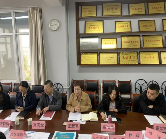 为加强学院之间的交流,进一步推进我院迎评促建工作,10月17日,语言文化传播学院领导班子、各专业课程负责人、大学英语课程负责人、学院办公室人员、辅导员等一行14人前往陕西学前师范学院外国语学院学习交流。外国语学院全体班子成员、原学院院长刘满堂教授、办公室工作人员及相关系部主任出席了会议。