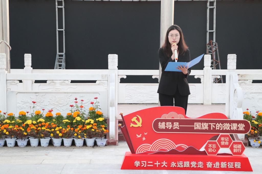 10月30日早晨,“辅导员说成长”——第十九期辅导员讲微课“厚植爱国情怀,砥砺强国之志”国旗下的微课堂爱国主义教育系列活动在学校中心广场举行,党委学生工作部老师、经济与管理学院师生代表参加活动。
