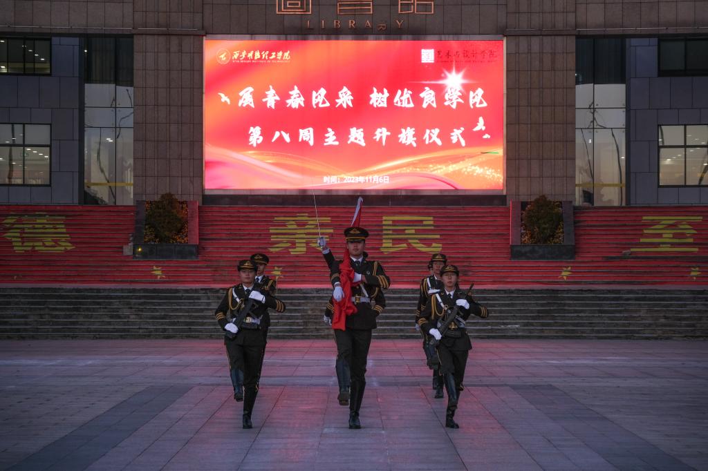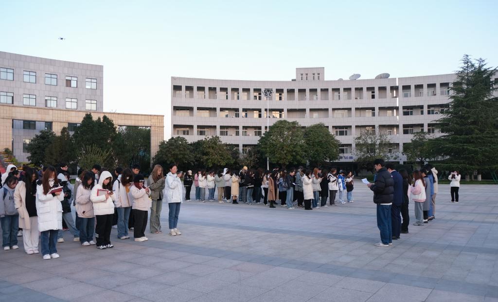 11月6日早晨,“辅导员说成长”——第二十期辅导员讲微课“展青春风采,树优良学风”国旗下的微课堂爱国主义教育系列活动在学校中心广场举行,党委学生工作部老师、艺术与设计学院师生代表参加活动。