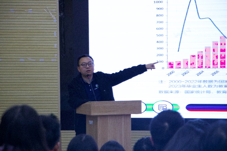随后,朱文瑜老师详细介绍了求职方式、就业信息收集等重要事宜,并为同学们分享了自身的求职经历,帮助即将进入毕业学年的同学们进一步明确了就业规划。