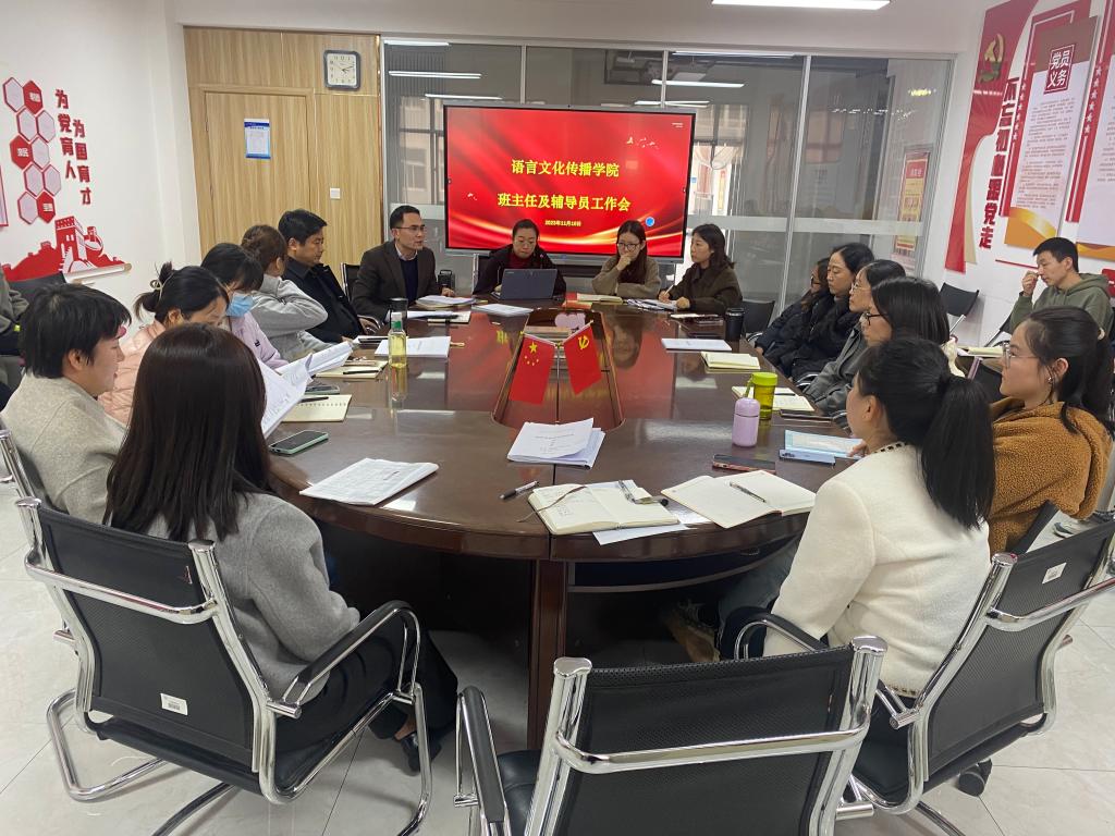 11月10日,语言文化传播学院召开2022级、2023级班主任及辅导员工作会议,学院党委书记赵旭东、副院长刘勇,2022级、2023级班主任、辅导员参加了会议,会议由学院党委副书记杨峰主持。