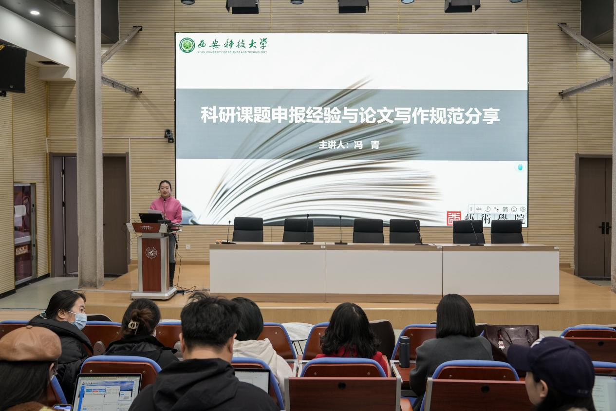 根据学校学术科技月活动安排,为提升青年教师科研能力,规范申报书写作规范,11月24日上午,艺术与设计学院特邀西安科技大学艺术学院副院长、陕西高校“青年杰出人才”、北京大学访问学者冯青教授在北校区尚德报告厅开展《科研课题申报经验与论文写作规范分享》专题讲座,艺术与设计学院全院教职工到场聆听学习,讲座由学院党委书记兼行政副院长雷宇主持。