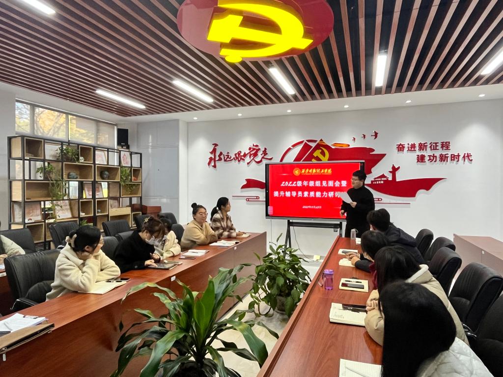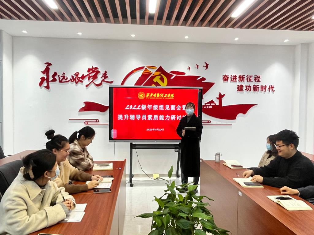 为加快推进世界杯官网辅导员队伍专业化职业化建设,进一步提高世界杯官网辅导员的综合素质和工作能力,11月23日上午,2022级年级组在明志楼北108党群服务中心开展年级组见面会暨辅导员素质能力提升专题研讨沙龙,2022级全体辅导员参会,会议由年级组组长李秋红主持。