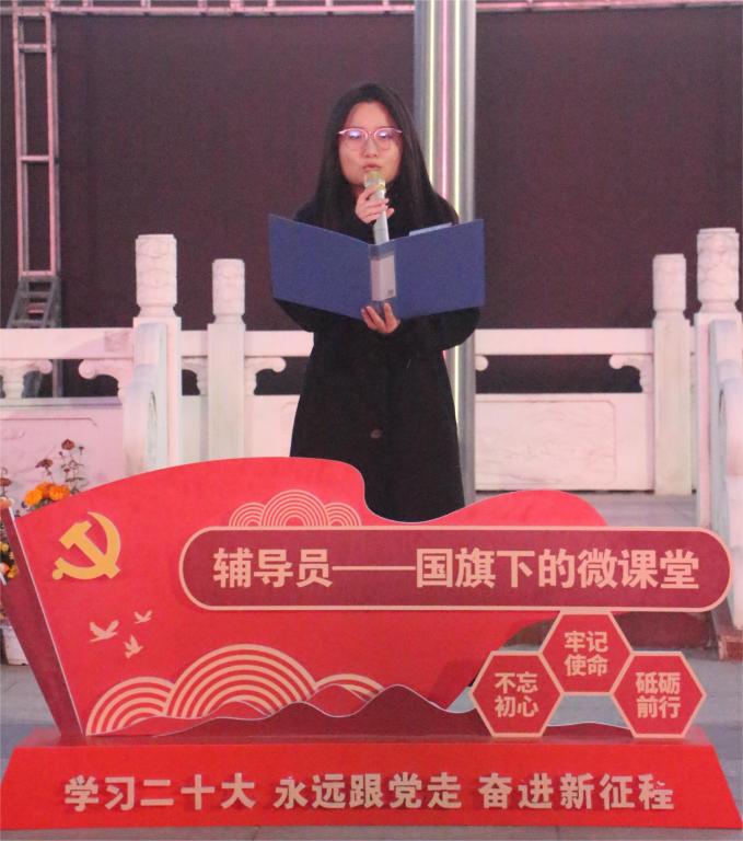 11月27日清晨,“辅导员说成长”——第二十三期辅导员讲微课“专注当下,创造未来”国旗下的微课堂爱国主义教育系列活动在学校中心广场举行,党委学生工作部老师、智能制造与控制技术学院师生代表参加活动。