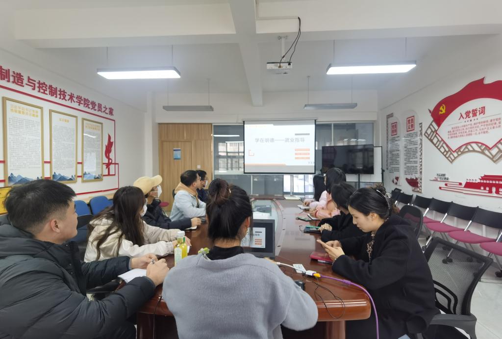 为加强新时代高校就业指导教师队伍建设,扎实推进学院就业指导与服务工作,智能制造与控制技术学院“智享”辅导员工作室于11月27日在明志楼北304开展就业指导交流暨工作推进会。学院党委书记陈雪彬、党委副书记曾凯、招生就业中心就业办公室王鹏及学院全体辅导员参加会议,会议由陈雪彬主持。