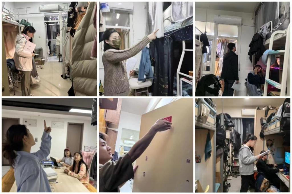 检查前,学工部召开现场安排部署会,童杨梓对本次检查的重点和要求作了说明。他指出,各学院要高度重视,深查细照,真抓实干,对于排查出来的安全隐患要根据学院实际情况制定整改方案,切切实实把安全稳定工作落到实处,为学生的学习、生活提供安全、稳定的环境保障。宋敏纲表示要把宿舍安全消防工作放在突出位置,牢固树立“安全第一、预防为主”的思想,本着对学生高度负责的态度,全力打造安全校园。检查分9个小组开展,覆盖南北校区12栋学生公寓楼,着重就学生宿舍用电、私拉乱接电线、大功率电器、饲养宠物、管制刀具等安全隐患逐楼逐间进行排查,同时以教育引导为主线,与学生进行深入交流,了解同学们生活学习、安全卫生、宿舍文化等方面情况。