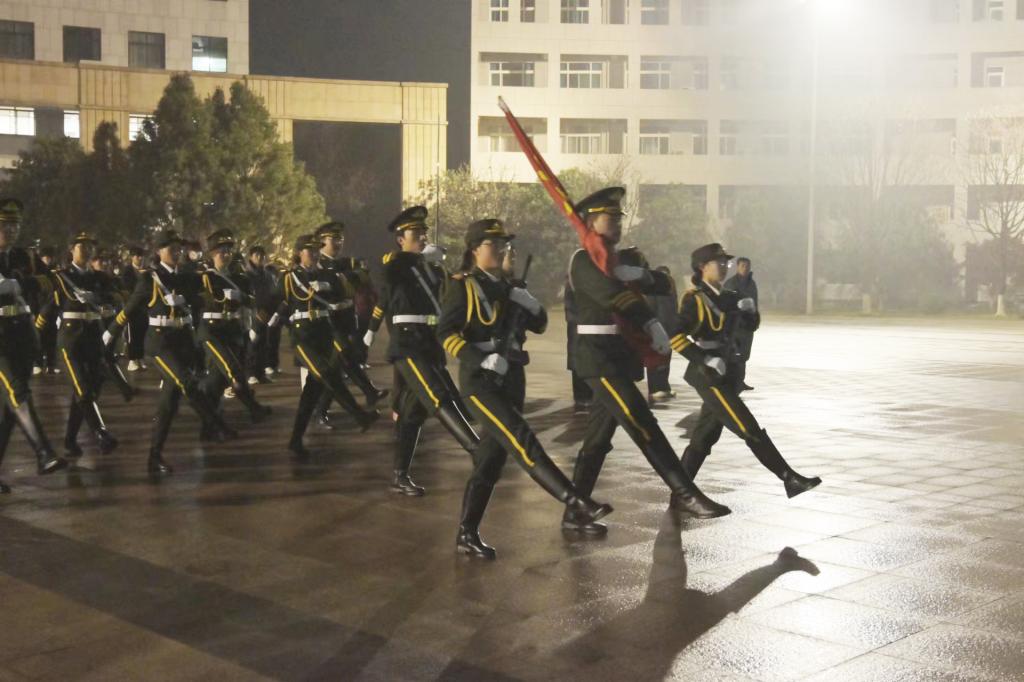 校园清晨虽细雨蒙蒙,寒风凛冽,但经济与管理学院的师生们不畏风雨,早已整齐列队静待升国旗活动的开始。7:00整,国旗护卫队迎着寒风,迈着整齐矫健的礼步护送着国旗走向升旗台,伴随着激情昂扬的《义勇军进行曲》,鲜艳的五星红旗冉冉升起,全体师生向国旗致以最崇高的敬礼,表达对伟大祖国无限热爱和最诚挚的祝福。