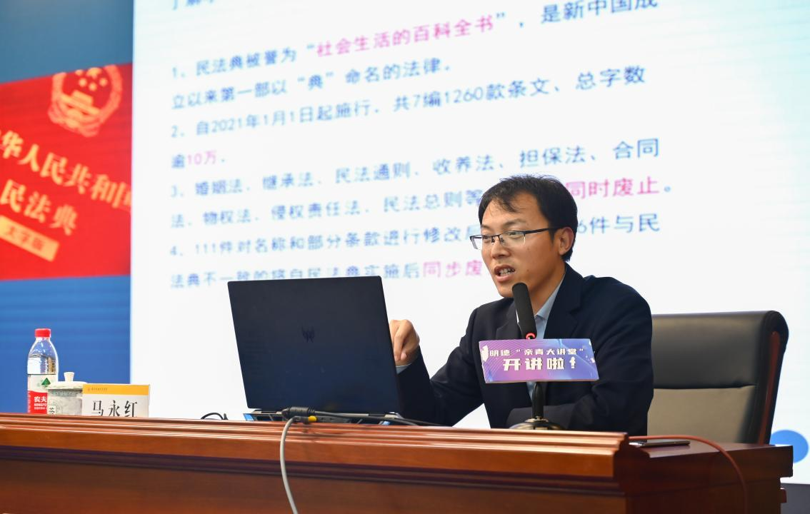 在两个小时的讲座中,马永红律师结合“叶挺烈士名誉权案”等案例,和在场师生不断问答互动,勉励大学生们牢固树立法治意识,以学习为本位,过有意义的大学生活,从身边小事做起,为理想努力奋斗。