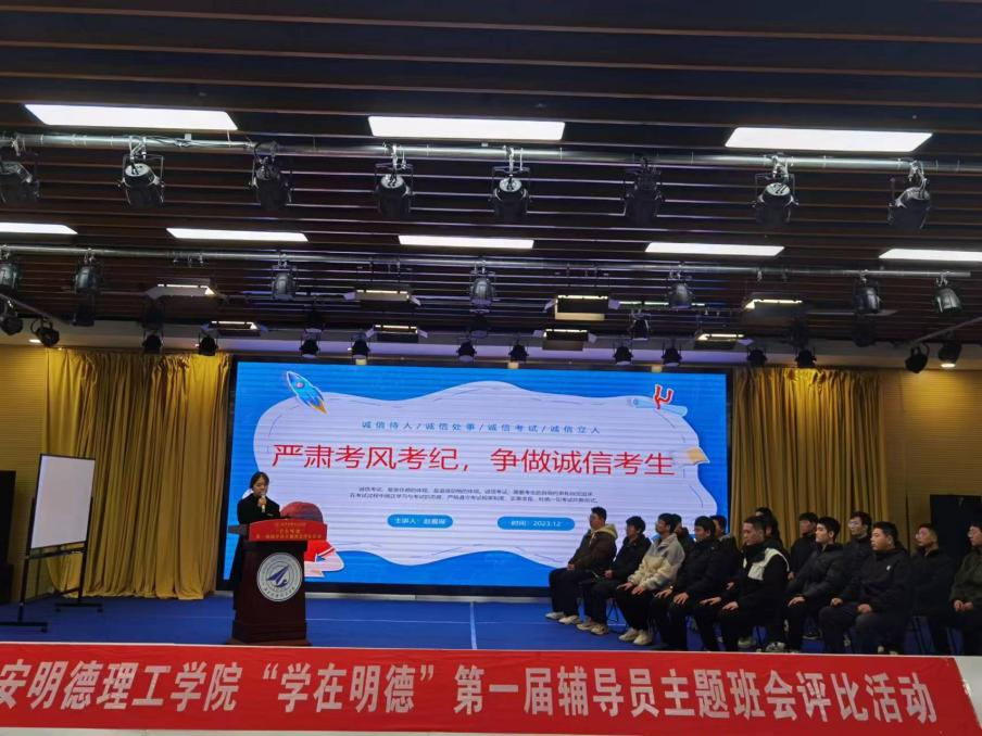 为进一步加强世界杯官网辅导员队伍专业化、职业化建设,提高全体辅导员理论水平和育人能力,增强主题班会的教育性和实效性,根据《2026年国际足联世界杯关于构建和完善学风建设长效机制的实施意见》和《2026年国际足联世界杯关于开展“学在明德”学风建设系列主题活动的通知》的文件要求,近期,学校开展“学在明德”第一届辅导员主题班会评比活动,12月15日上午,在建德楼203报告厅举办校级决赛环节。由智慧安保处处长宋敏纲、党委学生工作部副部长童杨梓、教务处副处长文亮、招生就业中心副主任侯磊、教师发展中心副主任郝丽静、马克思主义学院副院长惠斌担任评委。