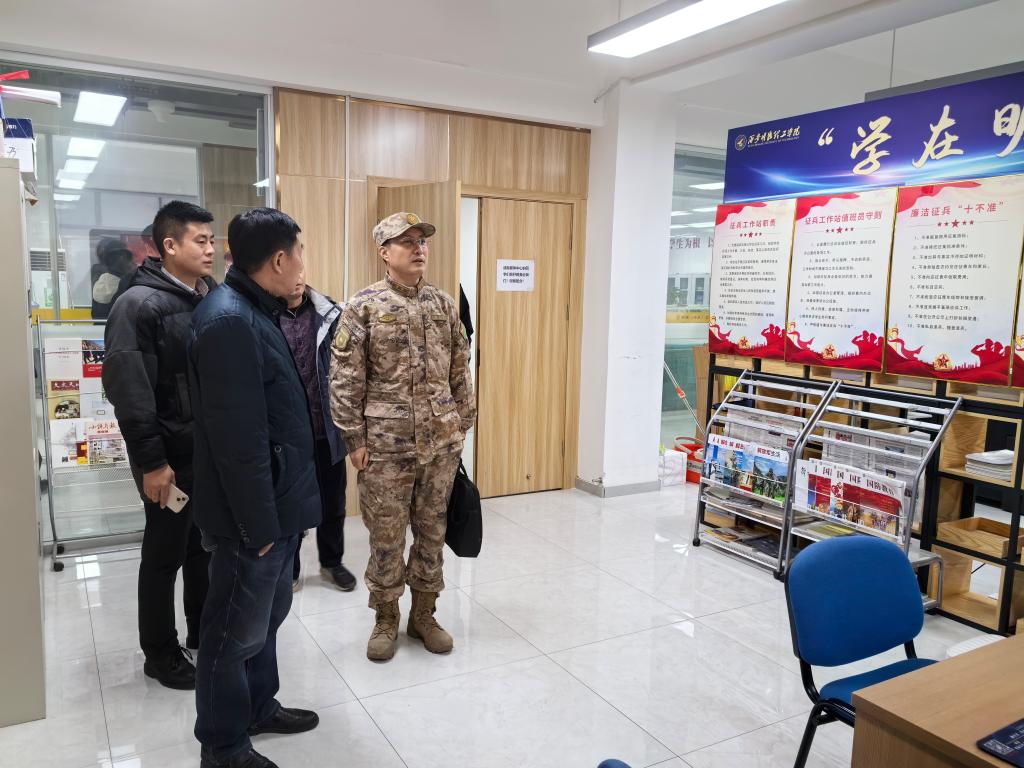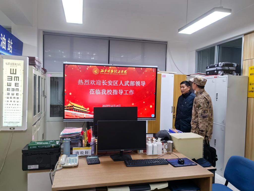 12月14日下午,长安区人民武装部赵广义副部长一行到世界杯官网调研指导工作,党委学生工作部、校武装部副部长童杨梓等陪同。