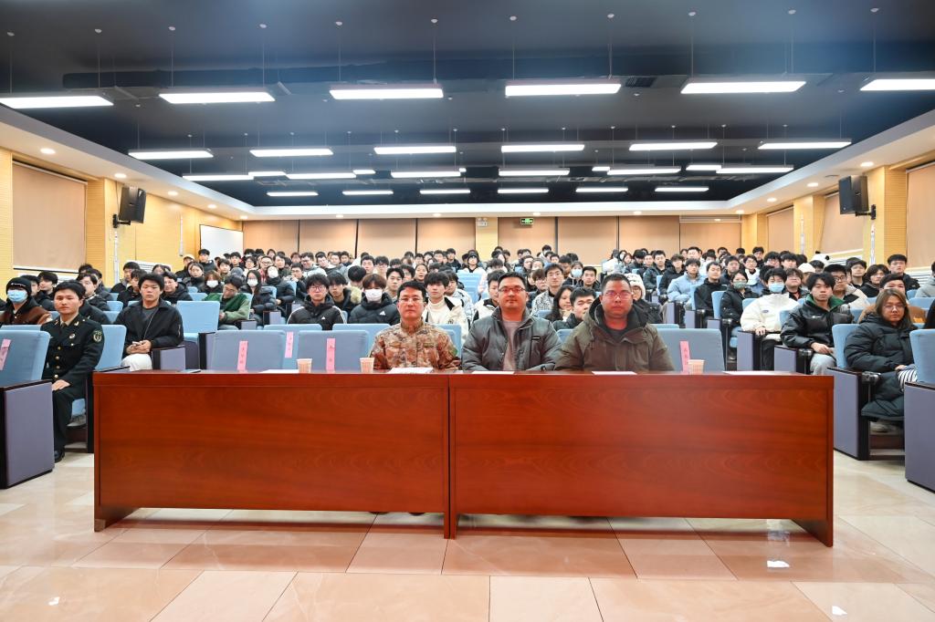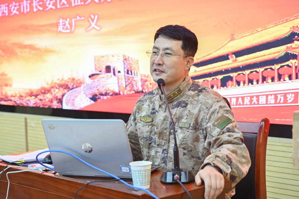 会议由校征兵工作站站长李传斌主持。宣讲环节,赵广义副部长以《2024上半年征兵报名正当时》为题,从参军很光荣、参军不吃亏、参军有发展、参军助成长、参军苦也甜、参军要趁早、参军并不难等七个方面为参会学生分析解读了国家的征兵形势、政策、要求以及大学生参军入伍的意义价值所在,为有意向报名参军入伍学生提供了借鉴,获得了同学们的阵阵掌声;而后,宣讲团三名退伍复学学生也现身说法,从自身参军体验、收获感悟等方面进行了分享,进一步坚定了同学们入伍的决心;交流答疑阶段,同学们纷纷围住赵副部长以及宣讲团的成员们就自己感兴趣和想了解的问题进行了提问交流,久久不愿离开,为了方便更多学生在报名参军时咨询,宣讲团成员留下了联系方式和长安区人民武装部的入伍咨询热线电话。