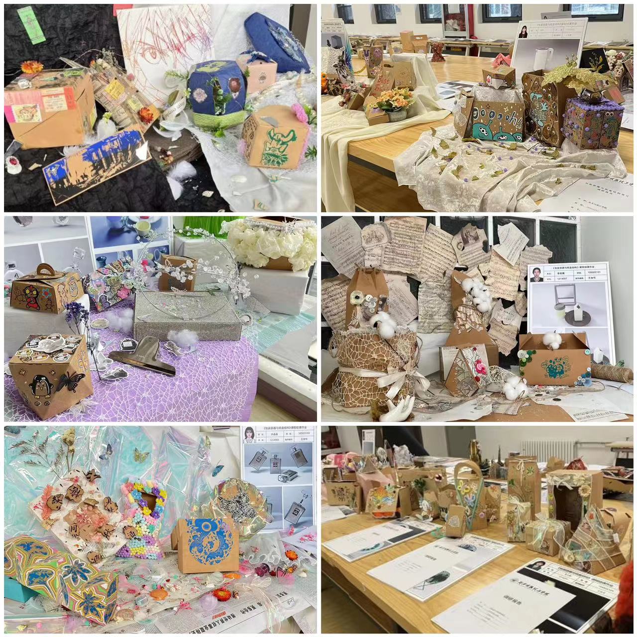 基于艺术与设计学院包豪斯工坊实验室的建设,同学们的作品不止局限于纸盒结构,还是用了丝网印刷、拼贴、特种纸样等工艺,使作品呈现更丰富。
