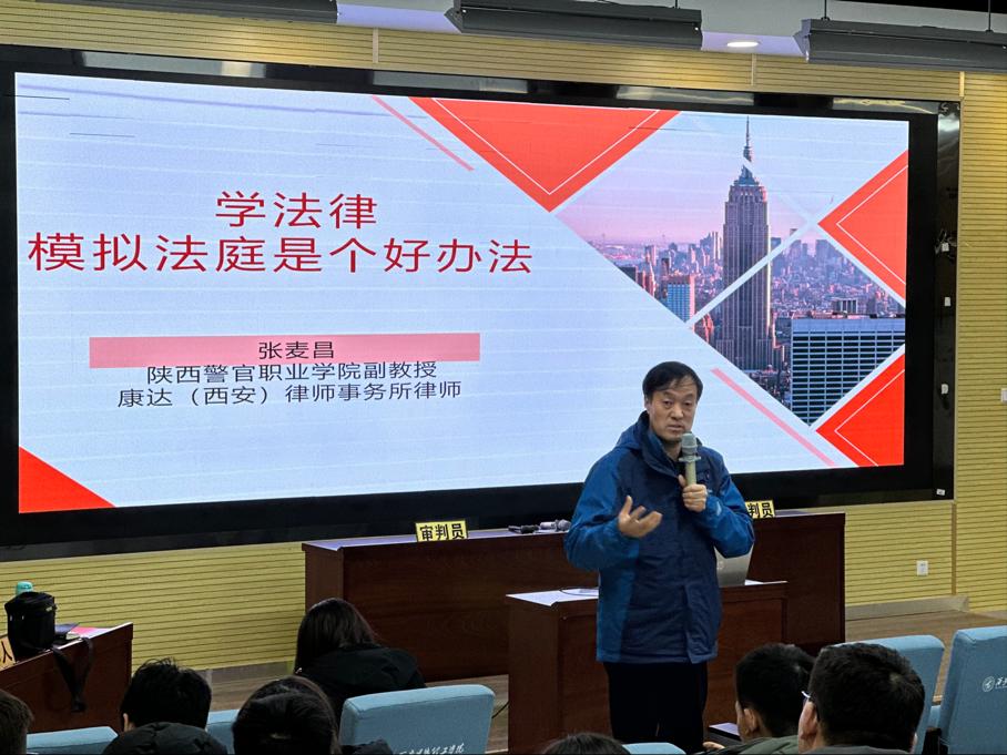 马克思主义学院特邀陕西警官学院副教授,康达(西安)律师事务所合伙人,陕西省预防青少年犯罪研究会监事张麦昌律师到场点评指导。出席本次活动的有马克思主义学院副院长惠斌,校团委副书记乔建,以及马克思主义学院教师代表、全校各专业学生代表200余名到场观摩。