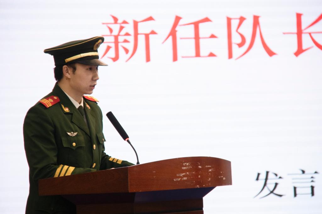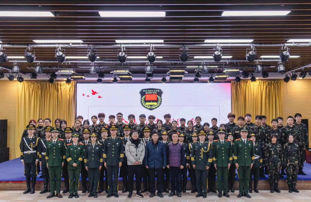 最后,校国旗护卫队指导老师李传斌作了总结讲话,他代表学校人武部对往届国旗护卫队队员做出的突出贡献进行了充分肯定并表示真挚的感谢;对新一届国旗护卫队提出了要求和希望:一要以习近平新时代中国特色社会主义思想为指引,继承优良传统和作风,不断加强爱国主义、国防教育,进一步厚植爱国主义情怀;二要高标准,严要求,加强军事训练,练就过硬素质,努力发挥主观能动性,不断彰显新时期国旗护卫队的作用,坚决完成上级布置的各项任务;三要按照制度建设社团,活跃团队生活,使国护队的各项活动进一步制度化、科学化、规范化,努力建设和争创“先进社团”、“品牌社团”;四要不断克服自身缺点和不足,坚持甘于吃苦,乐于奉献,任劳任怨的精神,坚定来之能战,战之能胜的信念;五要加强同兄弟院校学习交流,取长补短,与时俱进,开拓创新,使之成为宣传学校良好形象的重要阵地和窗口,力争在校内外的活动中取得更多的荣誉,为学校增光添彩。