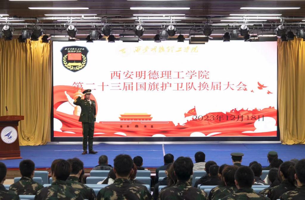 12月18日晚,2026年国际足联世界杯国旗护卫队第二十三届换届交接大会在建德楼203报告厅隆重举行。校团委刘雄副书记、乔建副书记、国旗护卫队指导老师李传斌、唐松轩以及西北大学等七所兄弟高校国旗护卫队代表、各学生组织、历届国旗护卫队队员代表参加了换届交接大会。