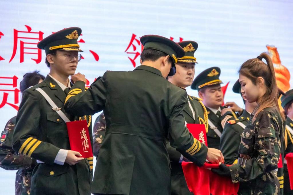 紧接着,校团委刘雄副书记宣布任命第二十三届国旗护卫队队长名单,并与李传斌老师共同为新任队长颁发了聘书;校团委乔建副书记宣布任命新一届国旗护卫队部长名单,并与学生工作部唐松轩老师共同为新任部长颁发了聘书;新老队长进行了授刀仪式;新任队长焦智昱宣读了入队正式队员名单并代表第二十三届国旗护卫队作了发言;刘雄副书记、李传斌老师为正式队员代表授衔;新一届全体队员做了入队宣誓,正式队员任勇杰作了表态发言。