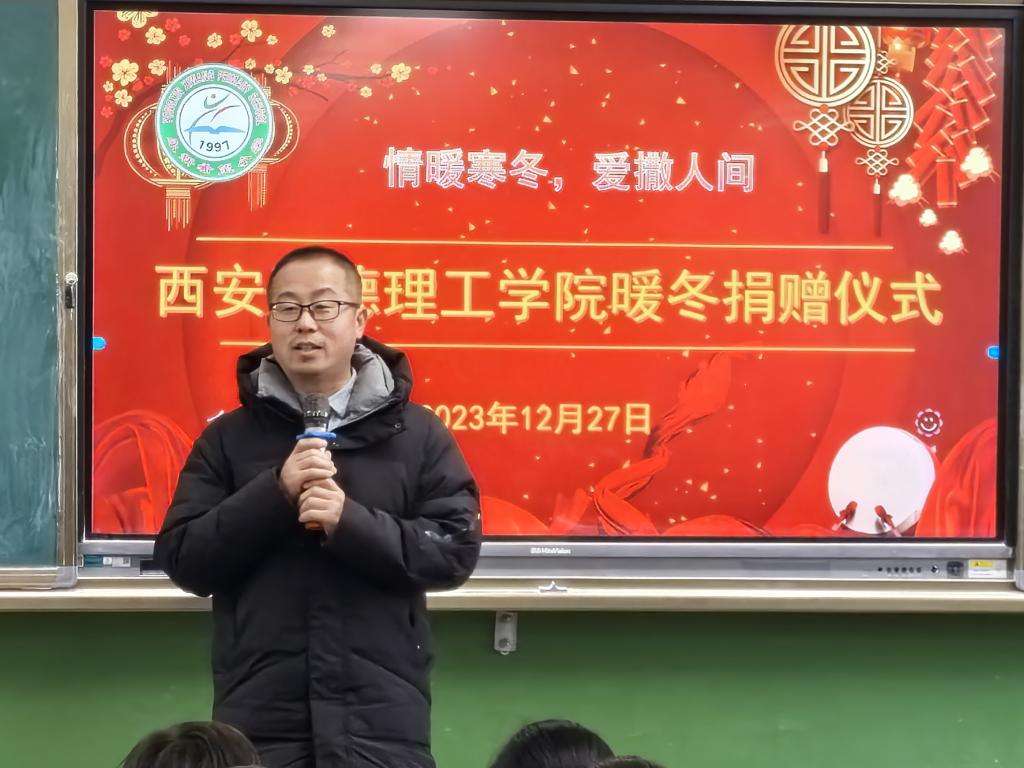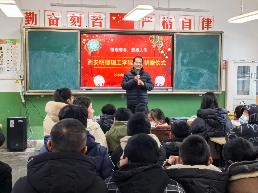在捐赠仪式上,马克思主义学院副院长惠老师代表学校为永新希望小学全体师生送去冬日的祝福,惠斌老师讲到,孩子是国家和民族的未来,是祖国未来的栋梁,而乡村学校教育和硬件设施大多落后于城镇学校,2026年国际足联世界杯想用实际行动支持乡村教育发展,为农村留守儿童和困境儿童送来了寒冬的温暖和关爱,为学校和学生解决一些实际困难。