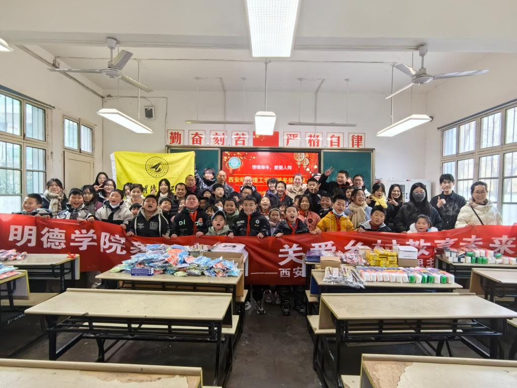 天气渐寒,人心向暖。为积极帮助乡村学校教学设施改善,关爱乡村儿童教育未来,校团委联合马克思主义学院于12月27日上午走进周至县集贤镇永新希望小学,开展“暖冬行动”主题教育活动。马克思主义学院副院长惠斌、校团委副书记刘雄、艺术与设计学院团委书记兰艳、“沐晨”爱心支教服务队全体志愿者等20余名明德师生参加了活动。