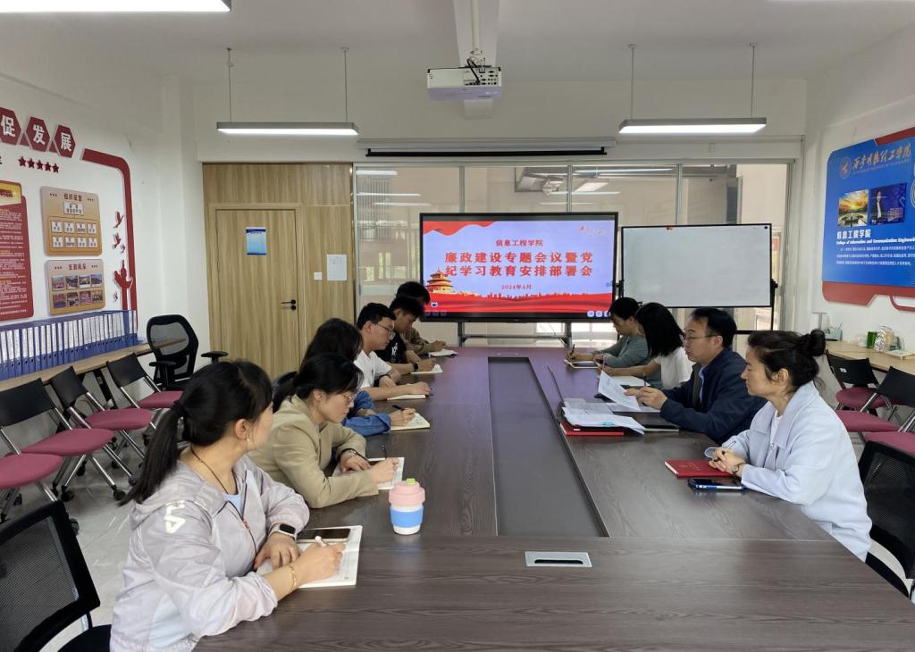 为扎实开展党纪学习教育,深入推进党风廉政建设,切实预防群众身边不正之风在学院发生。4月18日上午,信息工程学院党委在明志楼北206会议室召开党委扩大会,对党纪学习教育进行了安排部署,对廉政建设工作进行了专题分析。学院党委班子全体成员、各党支部书记参加会议。会议由党委书记肖千春主持。