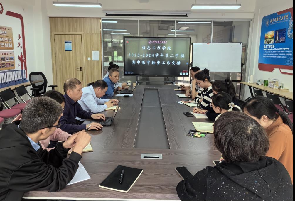 为全面落实“立德树人”根本任务,强化教学管理,发现教学问题,树立教学质量意识,提升教学质量,同时做好迎接本科教育教学合格评估准备工作,2024年4月23日中午,信息工程学院召开了2023-2024学年第二学期期中教学检查工作动员部署会,对期中教学检查做了全面动员和安排部署。学院专业负责人、实验中心副主任、教务员参会,会议由教学副院长范晖主持。